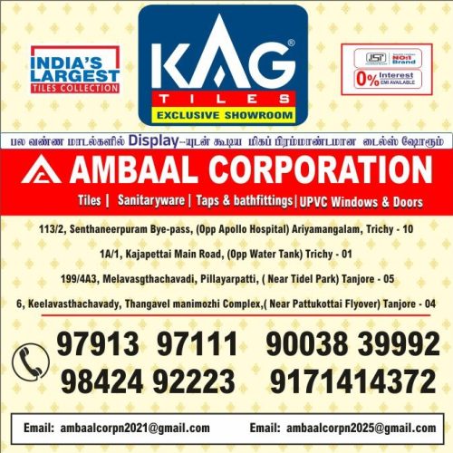 - Street: Door. No.113/2, Senthaneerpuram Bye Pass, (Opposite : Apollo Hospital), (Near : Hindu Office), (Golden Steel Backside), Ariyamangalam, Trichy - 620010.
