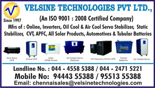 Mfrs Of : Online, Inverters, Oil Cool & Air Cool Servo Stabilizer, Static Stabilizer, CVT, APFC, All Solar Products, Automotives & Tubular Batteries.